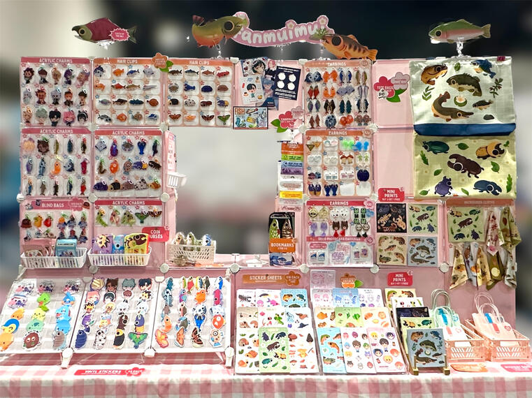 Hi there! I'm Apollo, a NYC-based artist and lover of all things cute and silly. My goal is to create both fun and functional products to make the everyday more whimsical.I design (and sometimes handcraft) everything myself; from accessories, including earrings and hair clips, to stickers, charms, and more. My products primarily feature original fish and bug designs, as well as designs inspired by my favorite anime and video games.